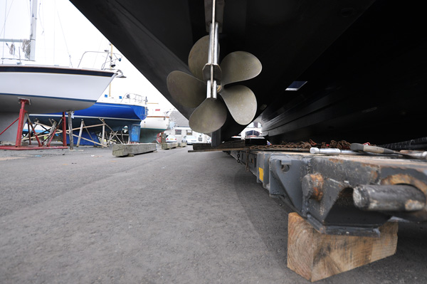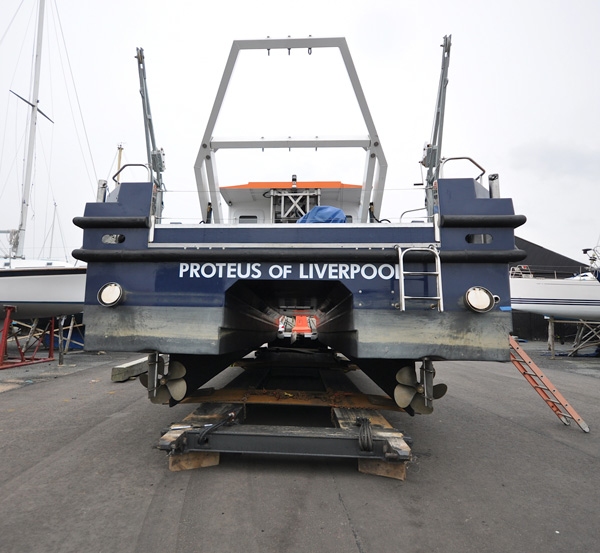 Relaunching 14M Blyth Workcat PROTEUS at Troon Yacht Haven