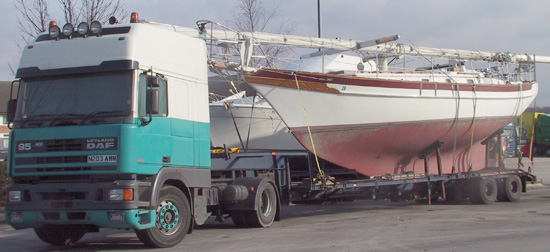 January 2007: To clear British motorway bridges, R.A. Bugler transported the Dutch-built steel Sealion 42 MAYNA, 12.8m x 4.37m 15 tonnes with her keel only 0.025m [ten inches] above the road surface, from Poole to Whitehaven, Cumbria, for launching. Planning by Sealand Boat Deliveries.