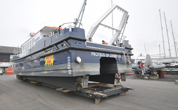 Relaunching 14M Blyth Workcat PROTEUS at Troon Yacht Haven